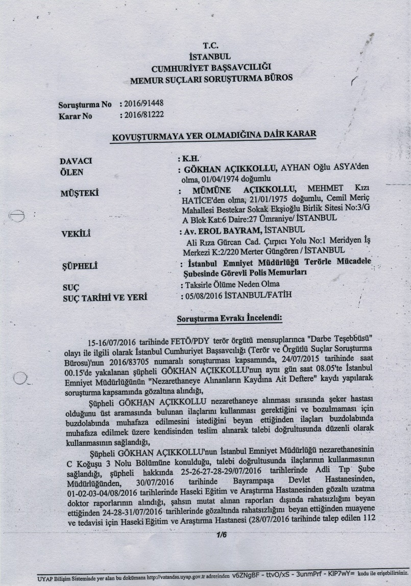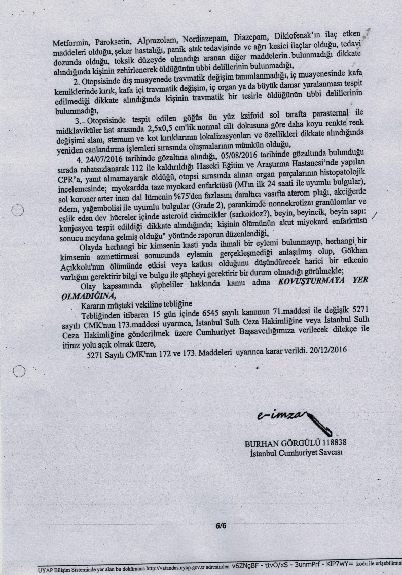 GÖKHAN AÇIKKOLLU KOVUŞTURMAYA GEREK YOKTUR BELGESİ