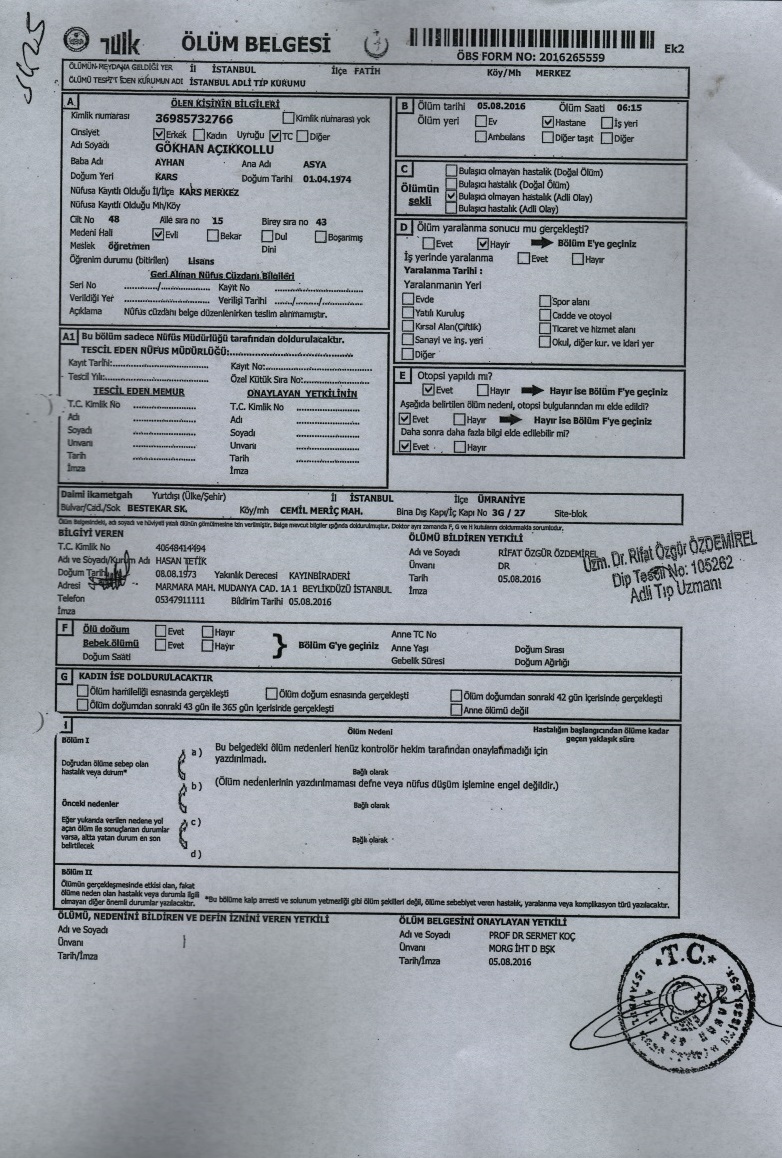 | Annesi Asya Açıkkollu, İstanbul Adli Tıp Kurumu, 5 Ağustos 2016 |