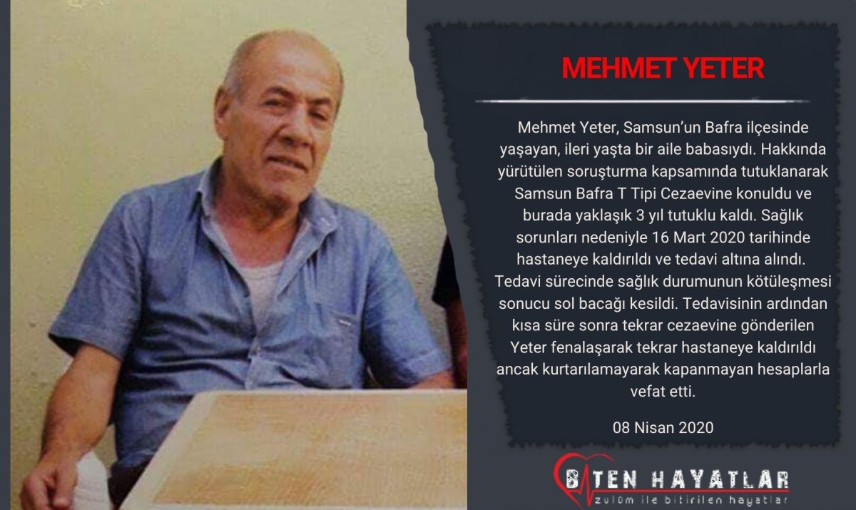 Mehmet Yeter’in ölümü, cezaevlerinde pandemi döneminde yaşanan ilk ölüm vakalarından biri olarak kayıtlara geçti.