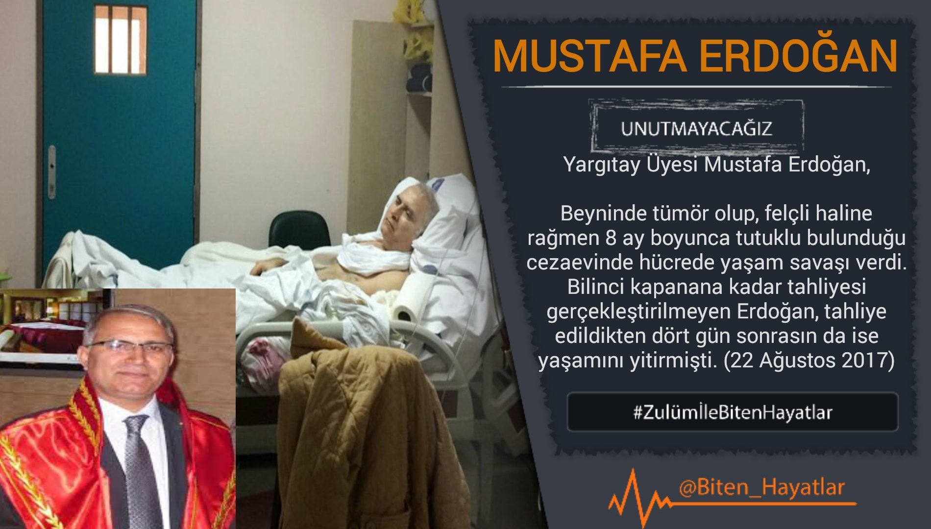 Felç olmasına rağmen “Kaçma şüphesi var” denilerek bilinci kapanana kadar tahliye edilmeyen Erdoğan’ın vefatının üzerinden tam iki yıl geçti. Erdoğan, 18 Ağustos 2018’de serbest bırakıldıktan dört gün sonra hayatını kaybetti.